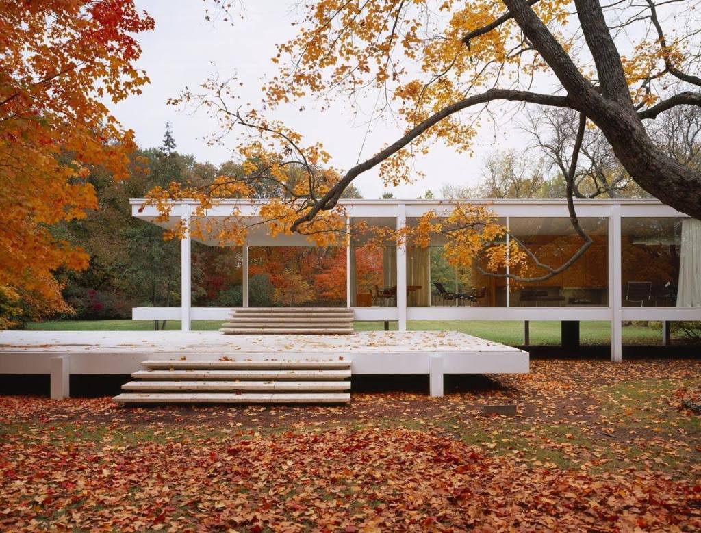 A volte, invece, questi edifici manifesto del movimento moderno sono isolati, in mezzo alla natura : in questo caso il contrasto è molto più piacevole, le grandi trasparenze sembrano accogliere e incorniciare il paesaggio naturale che si accosta alla geometrica architettura. Superfici bianche o vetrate dalle semplici forme geometriche si contrappongono alla bellezza del paesaggio che cambia colore nelle varie stagioni.